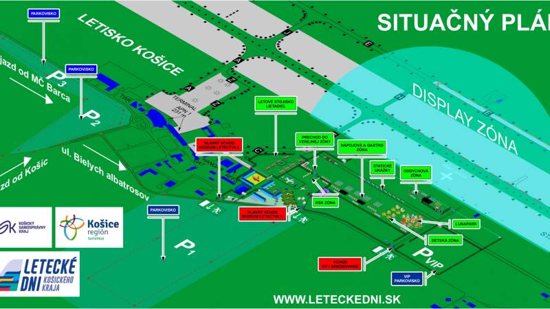 Z bezpečnostných dôvodov sú počas nácvikov a počas verejného leteckého podujatia LDKK 2025 v kritických miestach letových ukážok a v kritických miestach vzletovej a pristávacej dráhy vyhradené zóny so zákazom vstupu. Kontrolované budú políciou, SBS a usporiadateľskou službou. Miesta so zákazom vstupu sú vyznačené v situačnej mape.